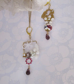 Ashley, could be worn like "Tracy". Beautiful and versatile, dress according to your style and outfits. Flowers, glass drops and brass charms are used in the earrings.