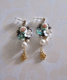 Jazreel - As pretty as can be. It is made of vintage rose cabochons from USA with lovingly petite flowers. Added with touches of Swarovski clusters and sweet tiny rose charms.