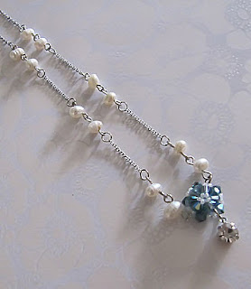 Pailey, another delicate piece, simple yet elegant. The pendant is woven with gorgeous Swarovski crystals, along side are freshwater pearls.