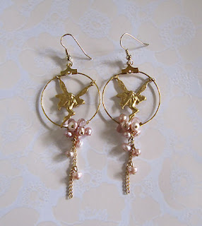 Celeste - Hoop earrings with gorgeous bits of freshwater pearls and pair of heaven-send brass fairies. What do you say? Aren't they lovely and meant for another woman with this personality?