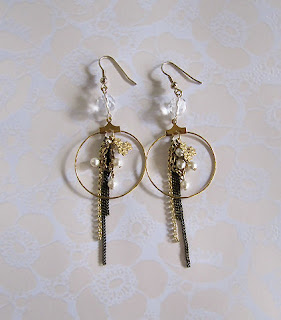 Eunice - Hoops earrings with some contrasts in it. Here with some pearls and bunch of lovely brass floral charms which carry in them so well. You'll love to have it.