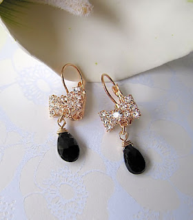 Faithe - Elegant and classy design. The earring hooks are made with many crystal bits and rose gold plated. The drops are highly graded faceted black spinel briolettes. Both briolettes are measured 6mm x 10mm and coiled up with 14k gold-filled wires.