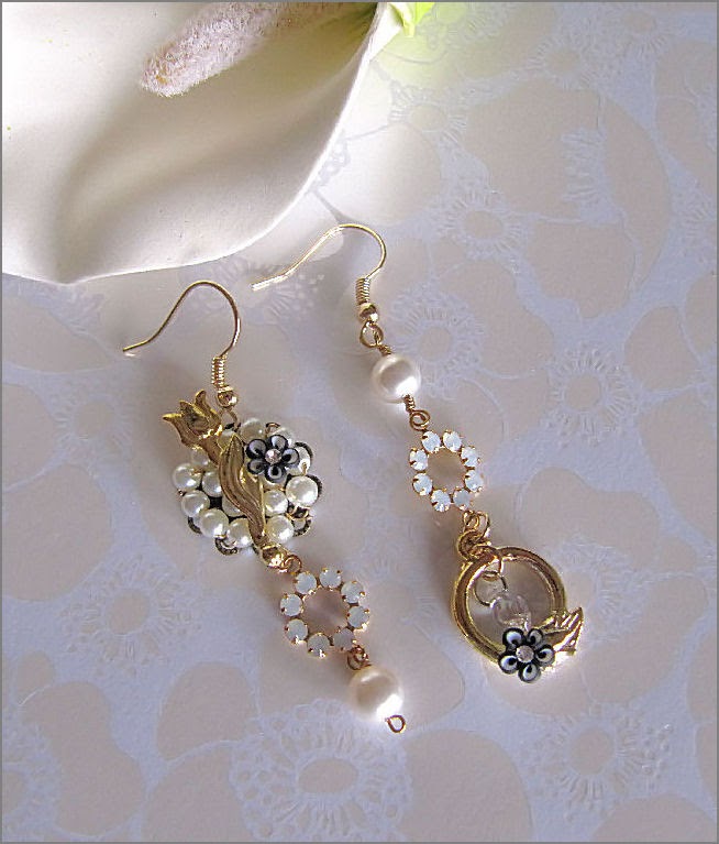 Gretchen - which means "little pearl". A beautiful earrings made from pearls and charms, with some Swarovski parts connecting each other. Great as gift or just for own wear.