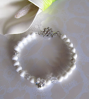 Judie - Lovable and classic bracelet. Made with strand mother of pearls beads with Swarovski flower crystal and crystallized balls for that added sparkles. The bracelet ends with a crystallized flower clasp. It will be nicely wrapped and made ready as gift.