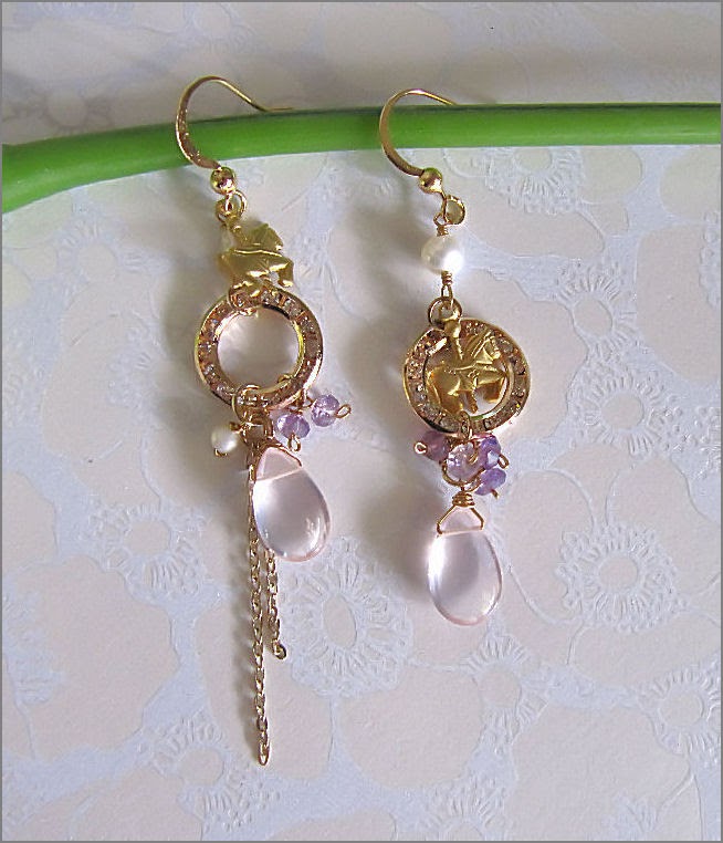 Little Carousel - This a a whimsical design with these little carousel charms. It reminds me of our childhood wonderland. Made lovingly with highly graded smooth puffy rose quartz gems with size 8 x 14mm, topping up are clusters of faceted amethyst rondells.