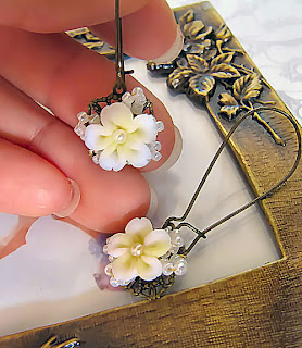 Lynda - Dainty and Lovely. These lovelies are made with pale yellow flowers with tinest seed beads at the side. They are attached beautifully to antiqued brass kidney earhooks which are 50mm from tip of earhooks to the edge of earrings.
