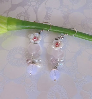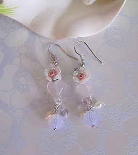 Pauline - Simple yet lovely petite earrings. Made with lovely heart shaped rose quartz beads, lovely roses and classy Swarovski round crystals. The round crystal drops are actually beautiful lilac in colour, however I could not capture its real beauty.