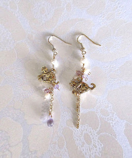 Playful Days - I love the kitties playfulness. Made with Swarovski crystal pearls with a pair of cat charms and touches up with Swarovski crystals.