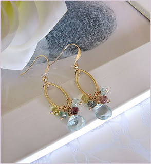 Bettina - has a meaning of "blessed". Lustrous Aquamarine faceted heart briolettes with toppings of quality tourmaline faceted rondells on 14k gold-filled oval hoops. Entire piece is made with 14k gold-filled parts. It's definitely a add-on piece to your heirloom collection.
