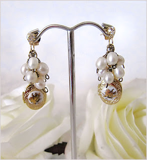 Hanne - Gorgeous. Made beautifully with bunch of freshwater pearls, holding on below are 2 little lockets embellished with vintage cameos. A perfect pair in your jewelry box.