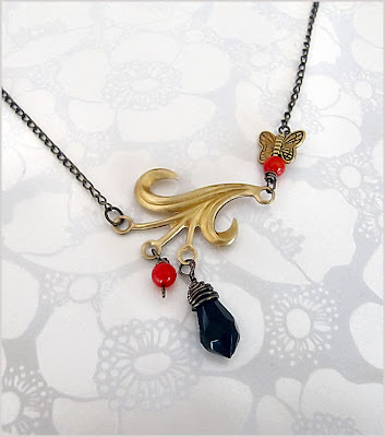 Hip and Swirl - This is another simple necklace. I have used a brass vintage swirl centrepiece with some stones and beads. Versatile and easy. Great for the night out.