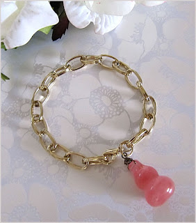 Luck and Charm - A simple 14k gold plated bracelet with a cherry quartz bottle gourd charm. It symbolizes luck and prosperous. Perfect to go along with that white top and jeans.