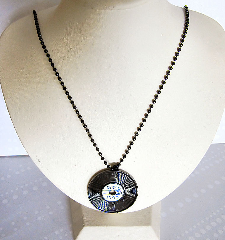 It is hung beautifully on a 28 inches black enamel ball chain. A long necklace.