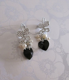 Fay is definitely an adoring piece. I have used 2 lovely butterfly earhooks holding on are Swarovski jet black heart crystals with some petite Swarovski cream crystal pearls and freshwater pearls.