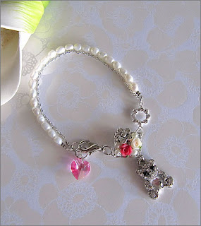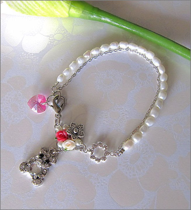 Gracie - She's such a darling. The bracelet is made up with bunch of roses and flowers, alongside are lovely freshwater white pearls which ended with a Swarovski heart. I would be delighted to receive such gift.
