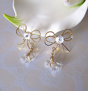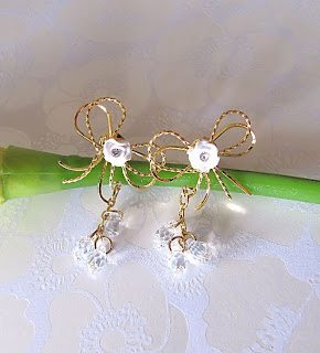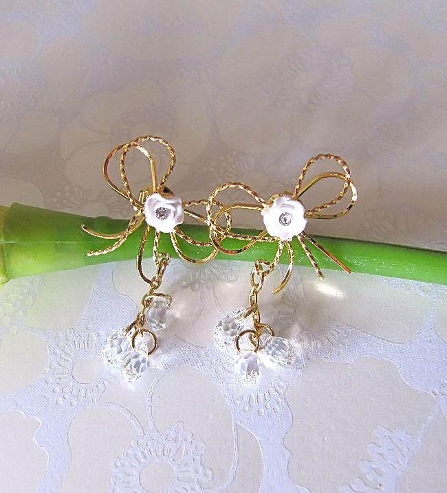 Ribbons - Beautiful and feminine. This is what she has. The earstuds is made of 16k gold plated ribbons which are pretty rare. Dazzling below the earstuds are bunch of Swarovski faceted briolettes which have a very glittering clarity in them. You will never know how lovely she can be.