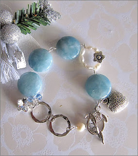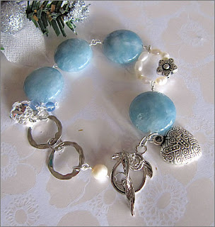 Ciel - It means "Sky". A beautiful sky blue quartz bracelet. Also made with Swarovski components and various charms, which ends with a rose and leaf toggle clasp.